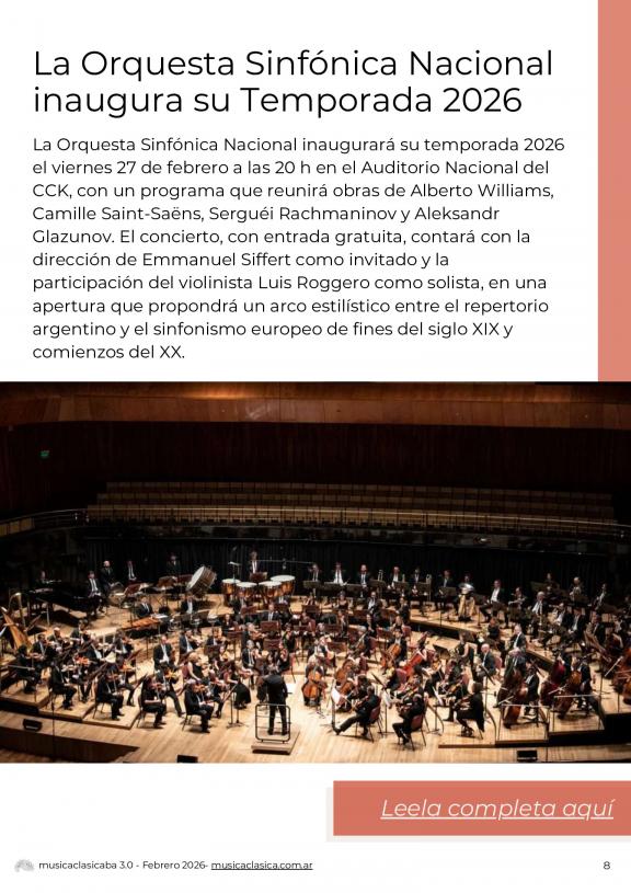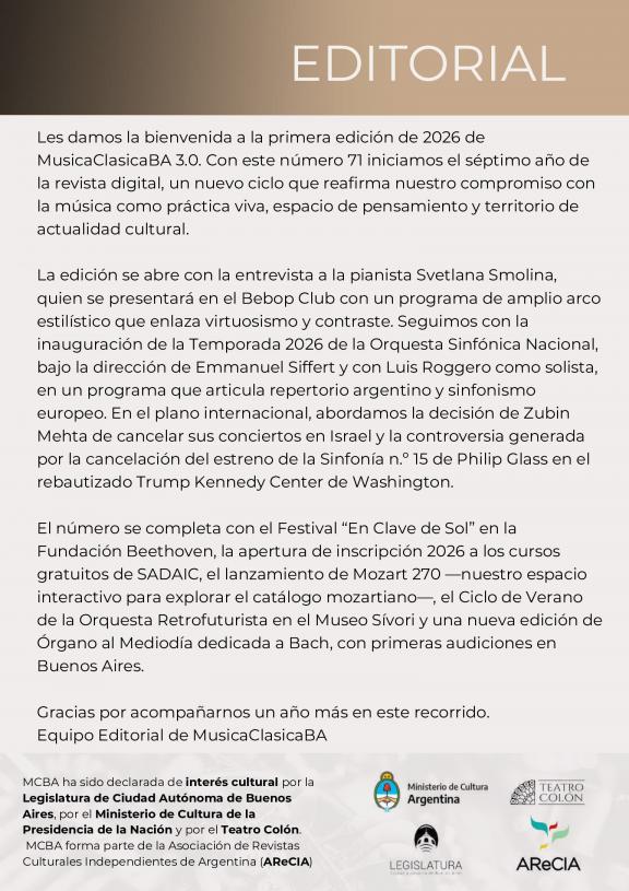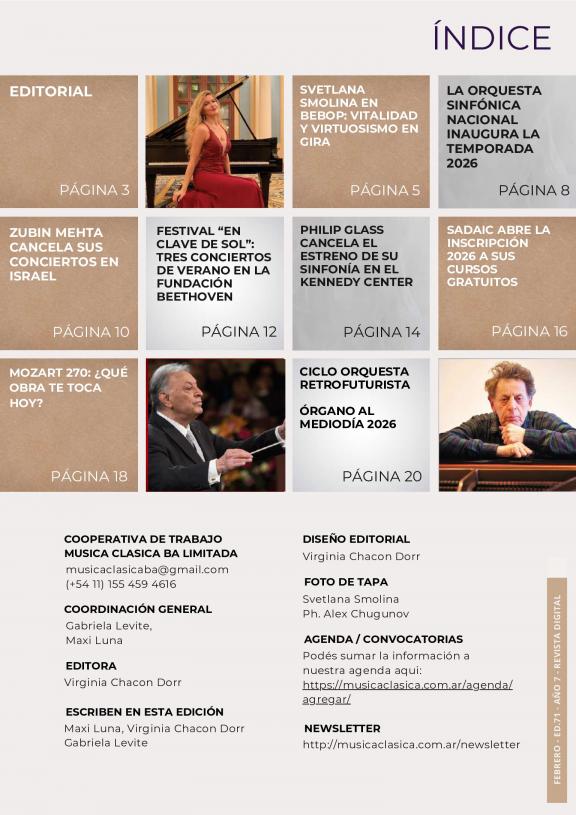 Música Cásica 3.0 es un publicación mensual con un enfoque más actual y desestructurado del mundo de la música clásica. En Música Clásica 3.0 encontrarán información de agenda, notas y entrevistas a artistas destacados.