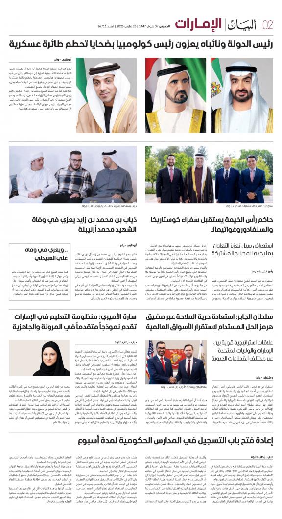 يمكنك الآن الاستمتاع بتصفح النسخة الرقمية، والتي هي طبق الأصل عن النسخة الورقية لصحيفة البيان على هاتفكم الذكي أو الجهاز اللوحي أو على شاشة الحاسوب. النسخة الرقمية تتيح لكم تجربة متميزة للعدد اليومي بكل المقالات والأخبار والميزات وبطريقة سلسة حيث يمكنكم التمتع بقراءة صفحاتكم المفضلة مع إمكانية البحث ومشاركة الأخبار في أي وقت وأي مكان كمرادف عن النسخة الورقية. بالإضافة لميزة القراءة بدون إنترنت عند تحميل النسخة المطلوبة وميزات أخرى ستتعرفون عليها عند تحميل التطبيق. في العاشر من مايو سنة 1980 صدر العدد الأول من صحيفة "البيان" لكي تشكل خلال رحلة مستمرة خلال العقود الأربعة مدرسة صحافية خرجت أجيالا من الصحافيين على مستوى دولة الإمارات والعالم العربي. وتصدر الصحيفة، التي تتبع مؤسسة دبي للإعلام، يومياً في نسخ ورقية ورقمية، تصل الى جمهور عريض من المتابعين في دولة الإمارات وعلى امتداد العالم العربي والعالم.