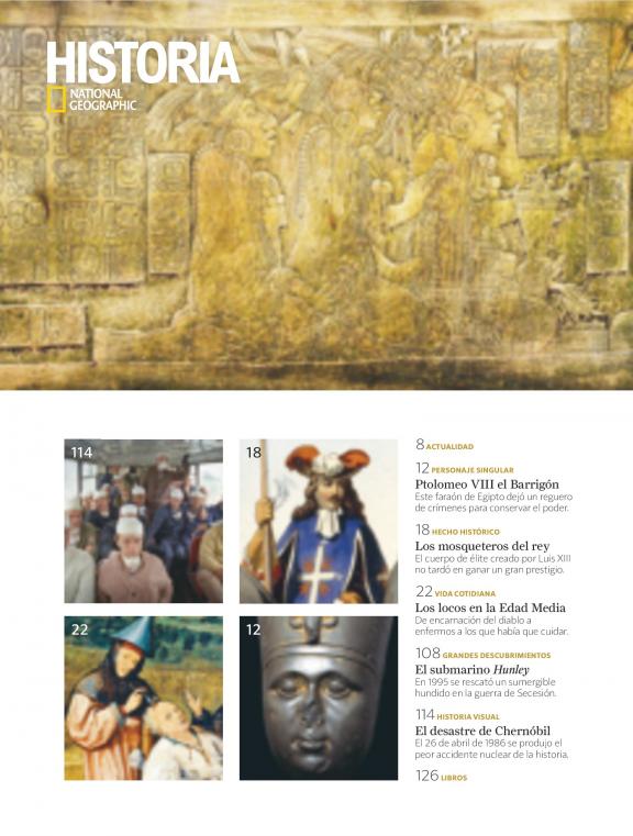 Descubre los episodios más apasionantes de la historia con las últimas y más rigurosas investigaciones por parte de los expertos de mayor prestigio. Todo ello, junto a fotografías, reconstrucciones históricas y mapas de gran calidad, símbolo y enseña de National Geographic. HISTORIA NATIONAL GEOGRAPHIC es la revista que, con el rigor editorial de National Geographic, te trasladará por las diferentes etapas de la historia: - hechos históricos trascendentales: batallas, exploraciones, conquistas, revoluciones - excepcionales personajes: Cleopatra, César, Leonardo da Vinci, Napoleón - avances culturales y científicos: el nacimiento de la escritura, la aparición del alfabeto, la astronomía en Mesopotamia, la medicina en Grecia - grandes monumentos: catedrales góticas, la Capilla Sixtina, la Ciudad - diferentes civilizaciones y su vida cotidiana: desde Egipto hasta el mundo maya