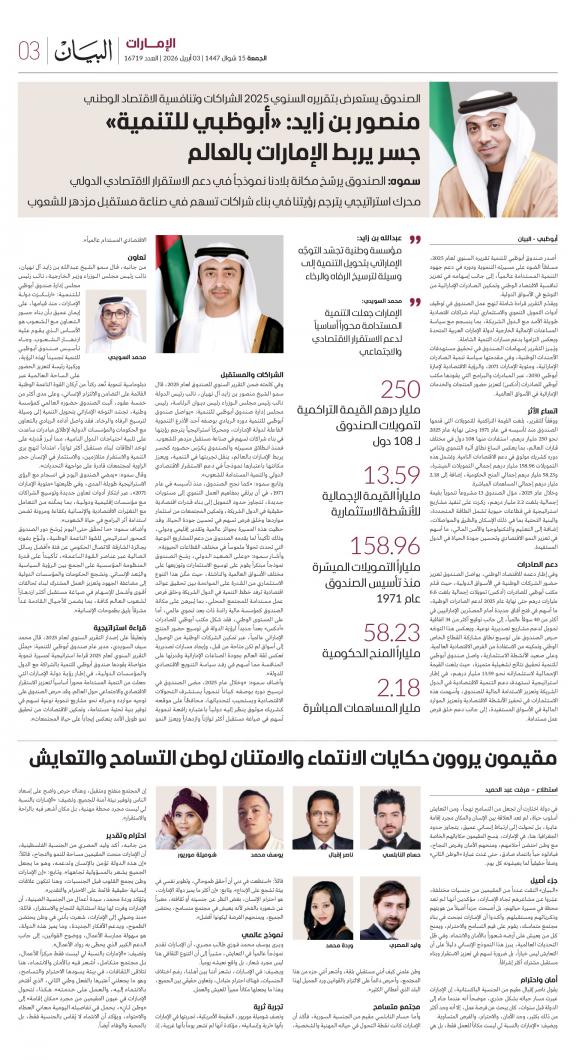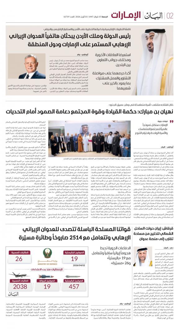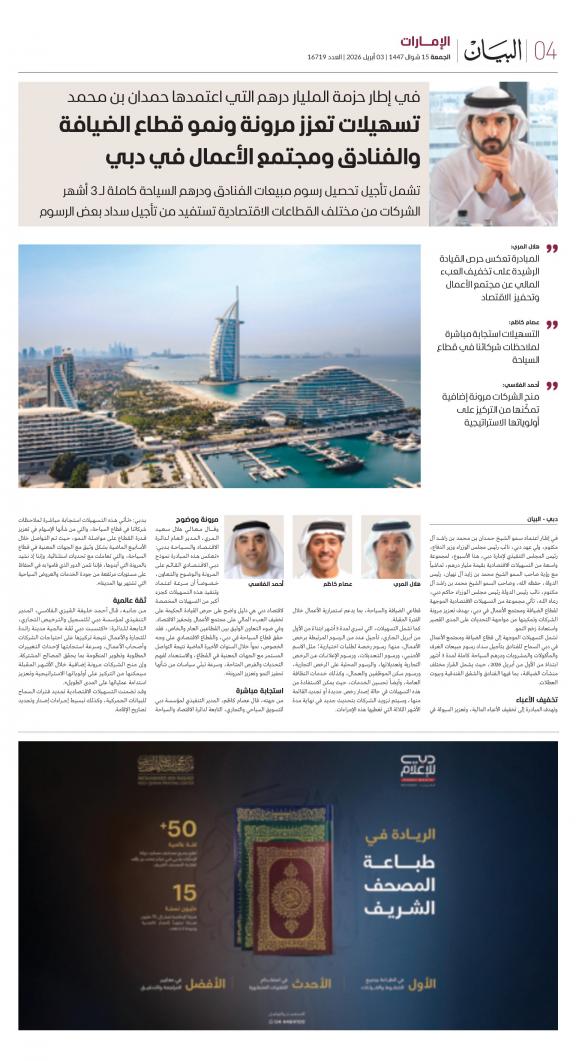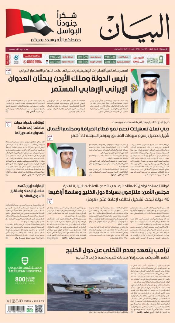 يمكنك الآن الاستمتاع بتصفح النسخة الرقمية، والتي هي طبق الأصل عن النسخة الورقية لصحيفة البيان على هاتفكم الذكي أو الجهاز اللوحي أو على شاشة الحاسوب. النسخة الرقمية تتيح لكم تجربة متميزة للعدد اليومي بكل المقالات والأخبار والميزات وبطريقة سلسة حيث يمكنكم التمتع بقراءة صفحاتكم المفضلة مع إمكانية البحث ومشاركة الأخبار في أي وقت وأي مكان كمرادف عن النسخة الورقية. بالإضافة لميزة القراءة بدون إنترنت عند تحميل النسخة المطلوبة وميزات أخرى ستتعرفون عليها عند تحميل التطبيق. في العاشر من مايو سنة 1980 صدر العدد الأول من صحيفة "البيان" لكي تشكل خلال رحلة مستمرة خلال العقود الأربعة مدرسة صحافية خرجت أجيالا من الصحافيين على مستوى دولة الإمارات والعالم العربي. وتصدر الصحيفة، التي تتبع مؤسسة دبي للإعلام، يومياً في نسخ ورقية ورقمية، تصل الى جمهور عريض من المتابعين في دولة الإمارات وعلى امتداد العالم العربي والعالم.