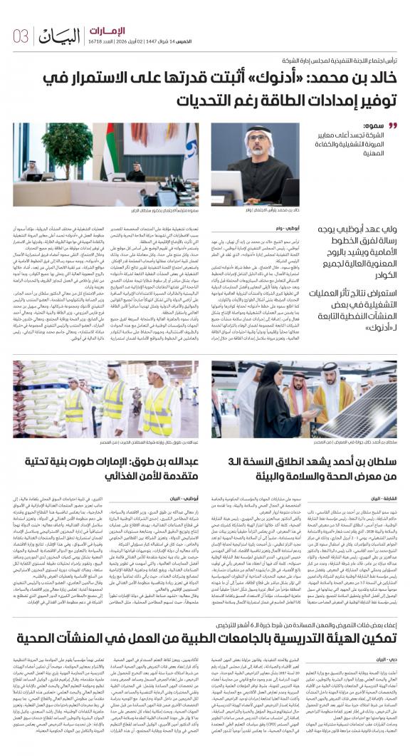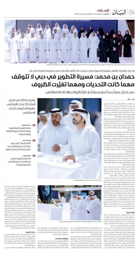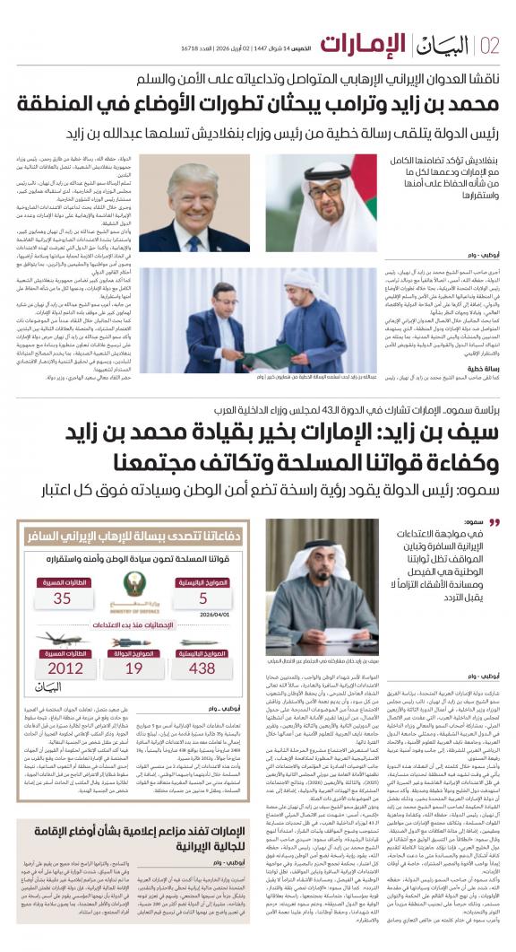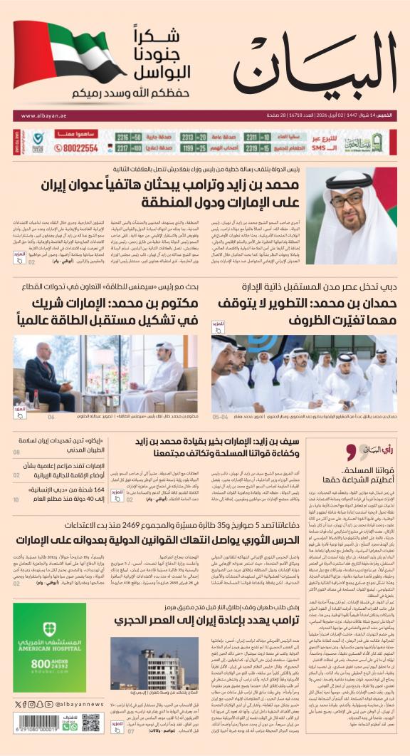يمكنك الآن الاستمتاع بتصفح النسخة الرقمية، والتي هي طبق الأصل عن النسخة الورقية لصحيفة البيان على هاتفكم الذكي أو الجهاز اللوحي أو على شاشة الحاسوب. النسخة الرقمية تتيح لكم تجربة متميزة للعدد اليومي بكل المقالات والأخبار والميزات وبطريقة سلسة حيث يمكنكم التمتع بقراءة صفحاتكم المفضلة مع إمكانية البحث ومشاركة الأخبار في أي وقت وأي مكان كمرادف عن النسخة الورقية. بالإضافة لميزة القراءة بدون إنترنت عند تحميل النسخة المطلوبة وميزات أخرى ستتعرفون عليها عند تحميل التطبيق. في العاشر من مايو سنة 1980 صدر العدد الأول من صحيفة "البيان" لكي تشكل خلال رحلة مستمرة خلال العقود الأربعة مدرسة صحافية خرجت أجيالا من الصحافيين على مستوى دولة الإمارات والعالم العربي. وتصدر الصحيفة، التي تتبع مؤسسة دبي للإعلام، يومياً في نسخ ورقية ورقمية، تصل الى جمهور عريض من المتابعين في دولة الإمارات وعلى امتداد العالم العربي والعالم.
